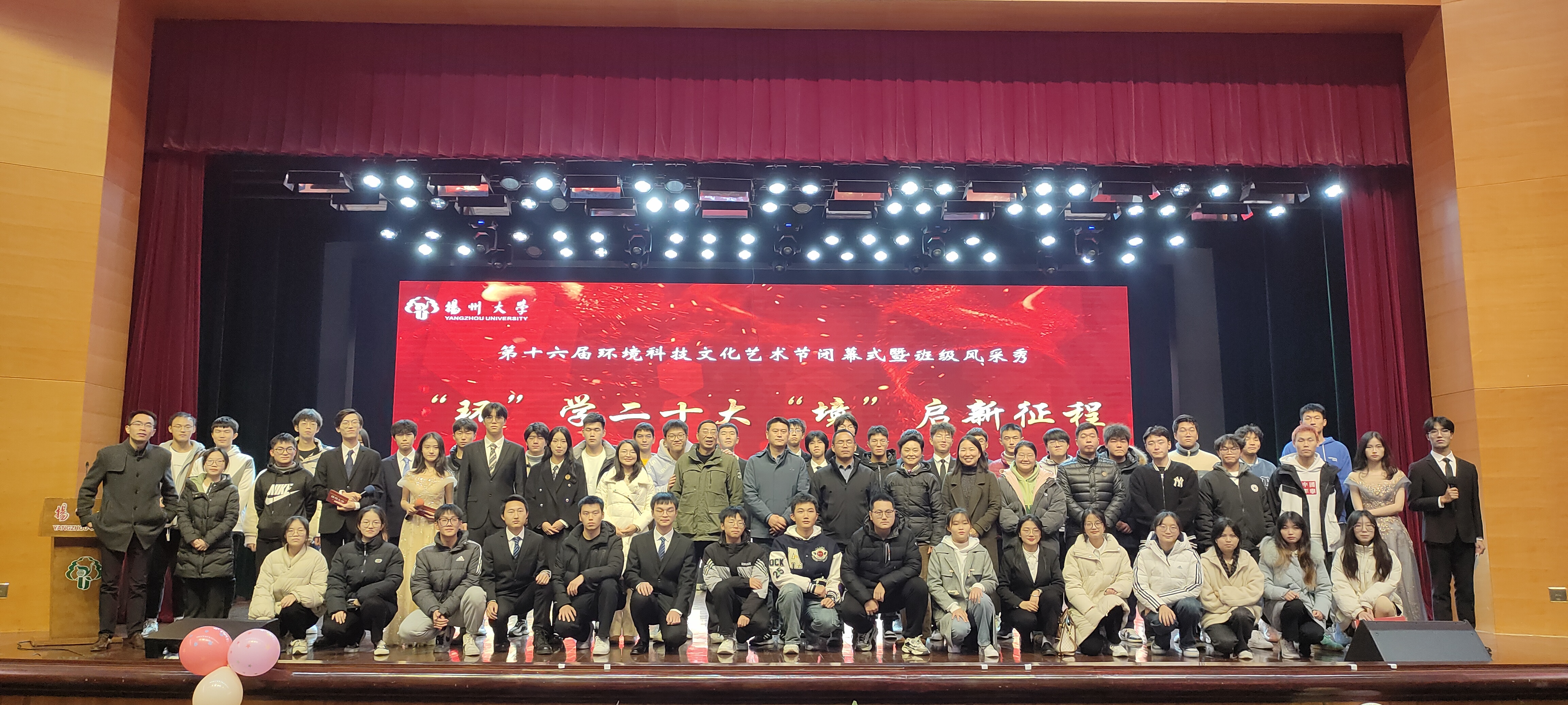 12月8日晚,我院于文体馆三楼小剧场举办第十六届环境科技文化艺术节开幕式暨班级风采秀。院党委副书记李玉军、校关工委老干部艺术团团长姚蔚、各班班主任以及院团委学工办全体老师出席晚会并担任评委。