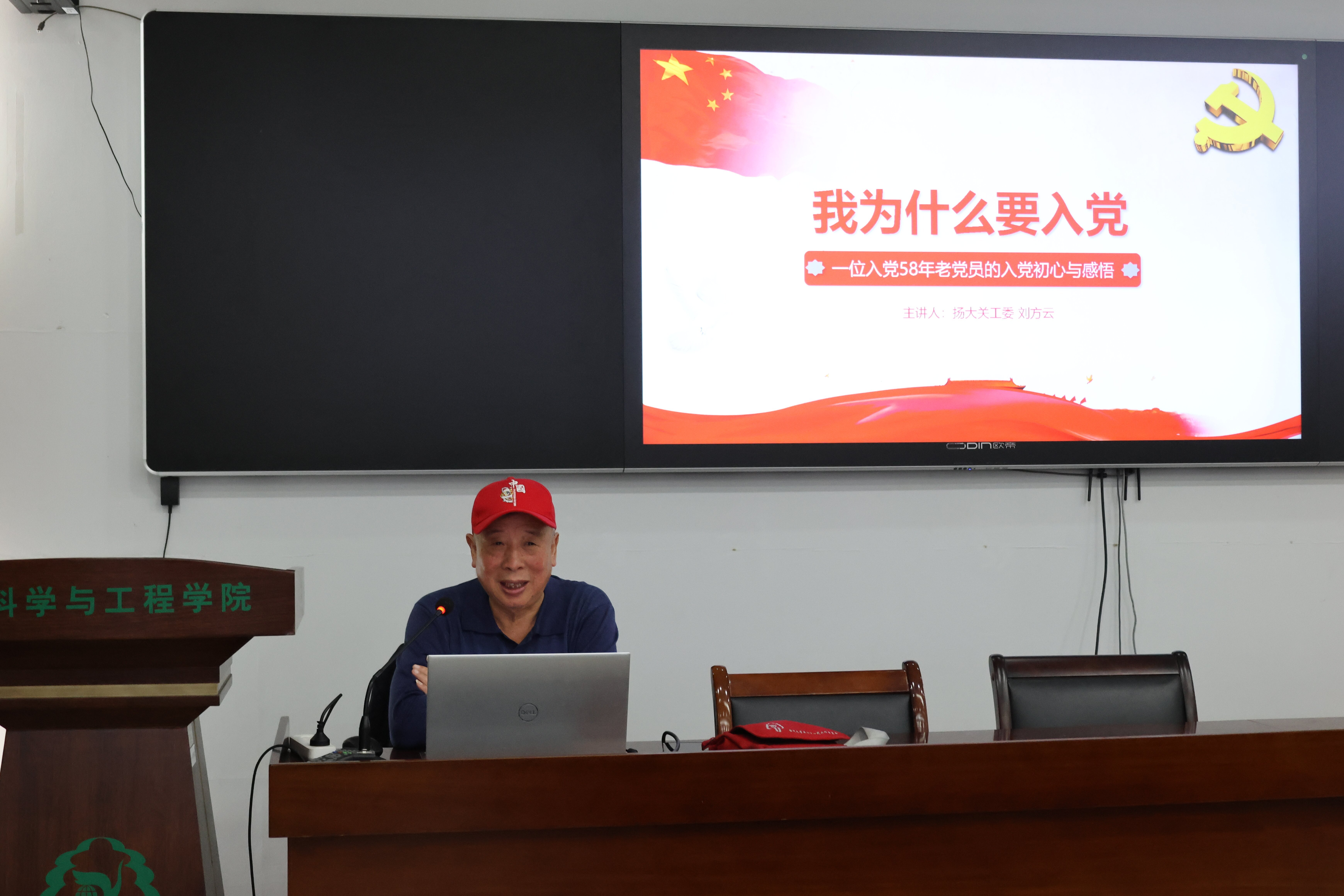 接着,刘老师分享了自己58年的入党经历,刘老师从小就受到党的关照,在参军入伍以后便积极提交了入党申请书。也正是由于党的影响和感召,刘老师在援越抗美战争中不畏牺牲,英勇地救下了负伤的战友……此外刘老师还介绍了刘胡兰、黄继光、董存瑞等革命先烈的英勇事迹,诠释了共产党人无私无畏、敢为人先的精神。