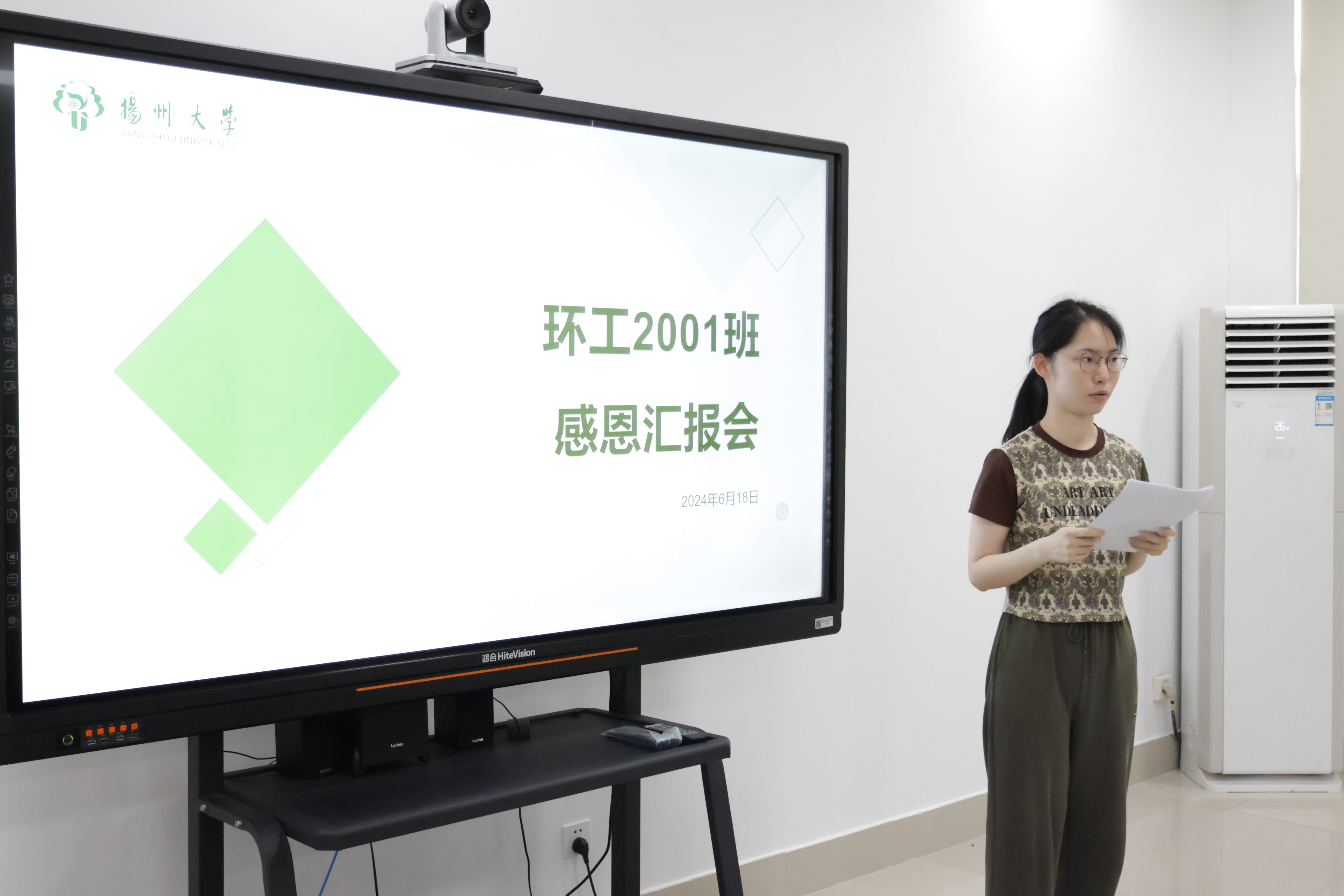 环工2001班班长雍紫馨同学首先代表班级全体同学对姚蔚老师四年来的指导与关爱表示感谢,并从班级建设、升学就业、班级荣誉等三个方面汇报了班级的发展情况,最后带领大家回忆过去四年与姚蔚老师结对相处的点点滴滴。