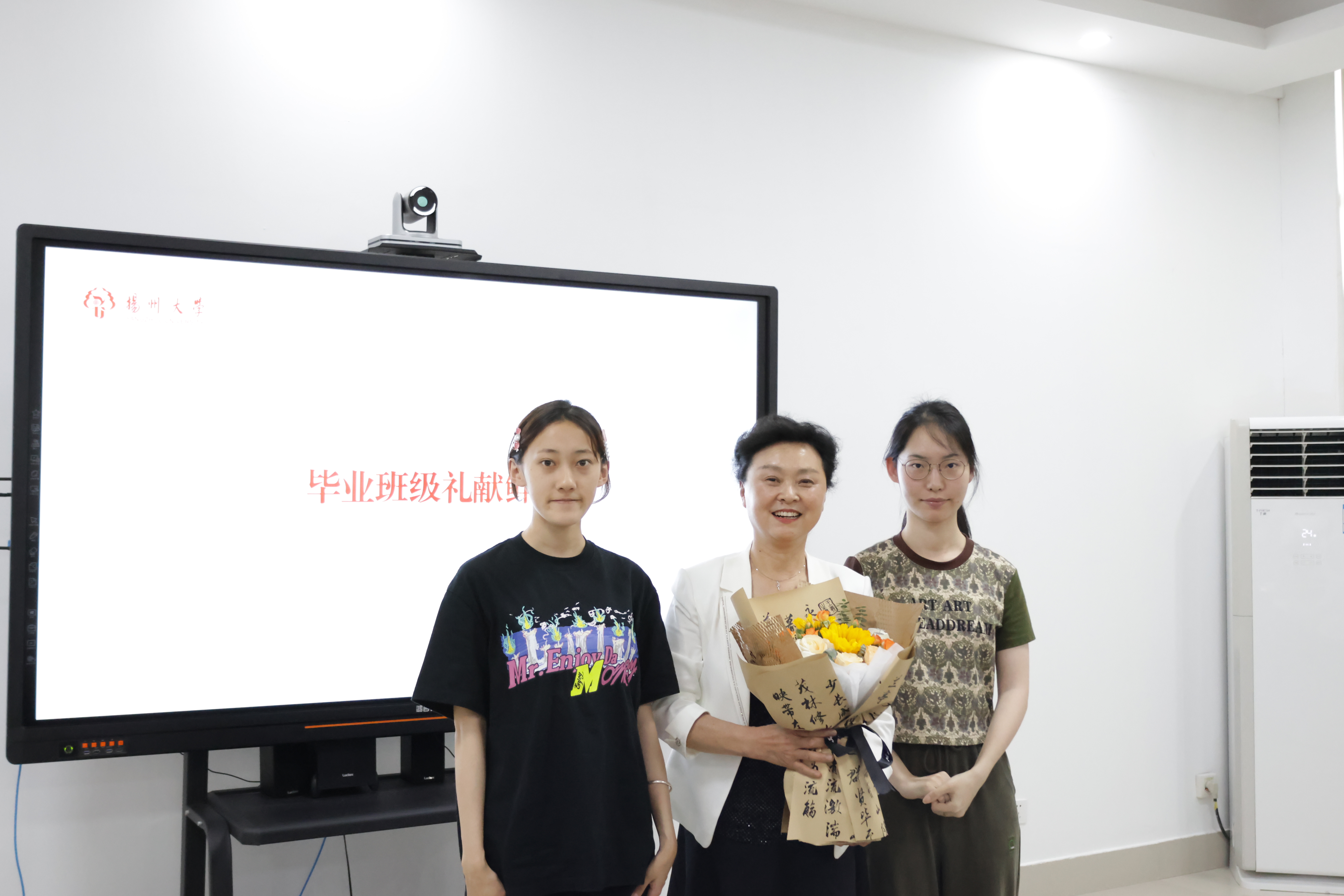 会上,同学们精心准备了鲜花以感谢姚蔚老师四年来的关心与付出。