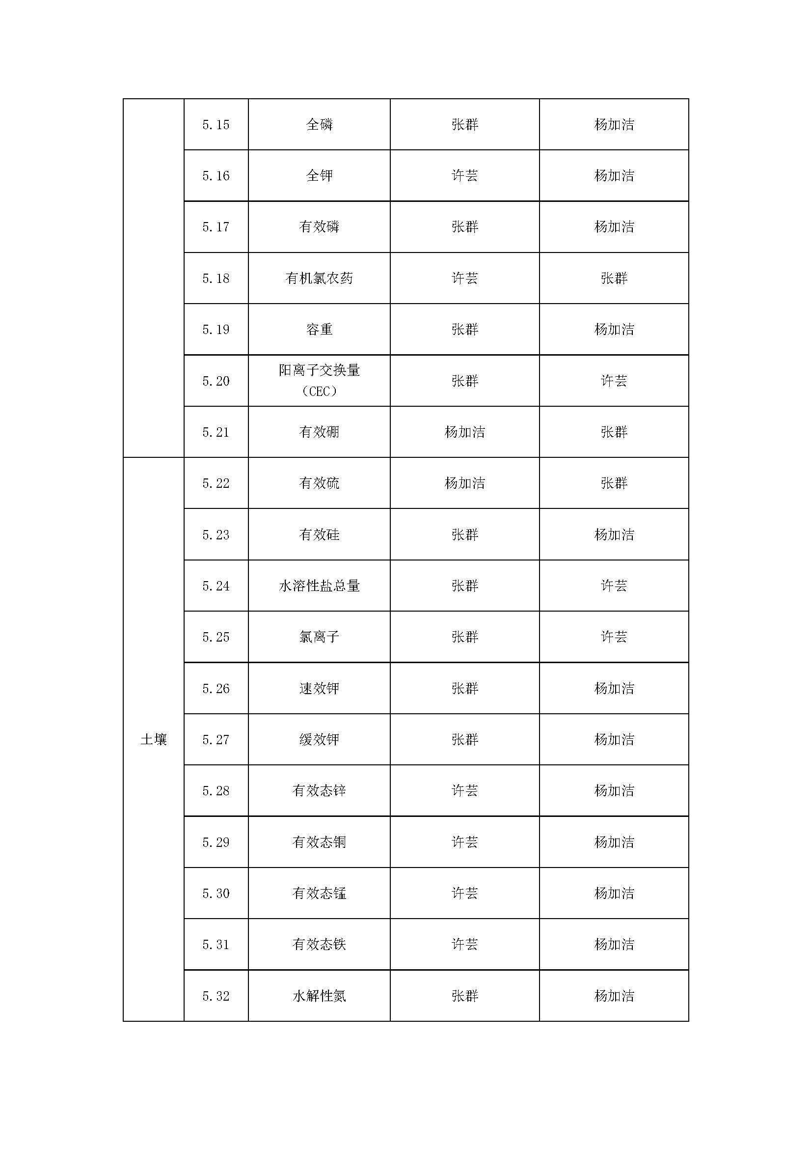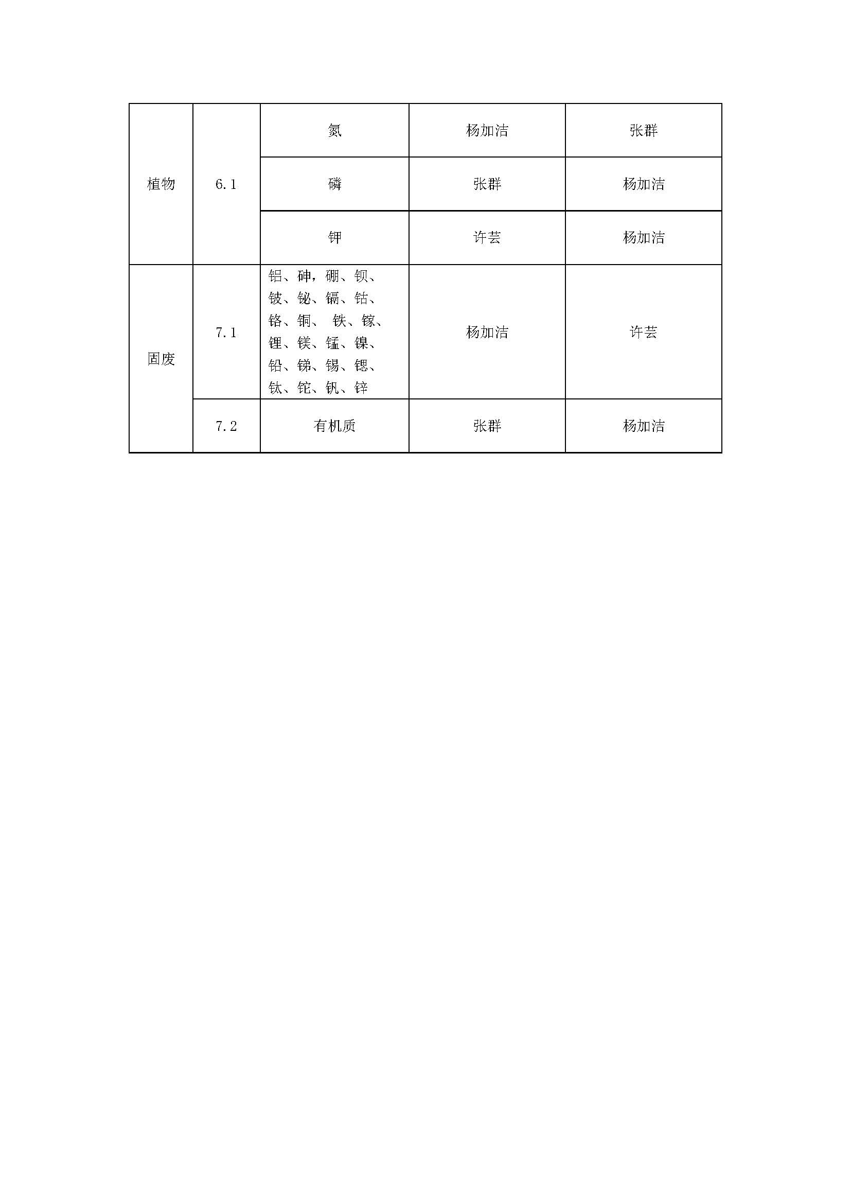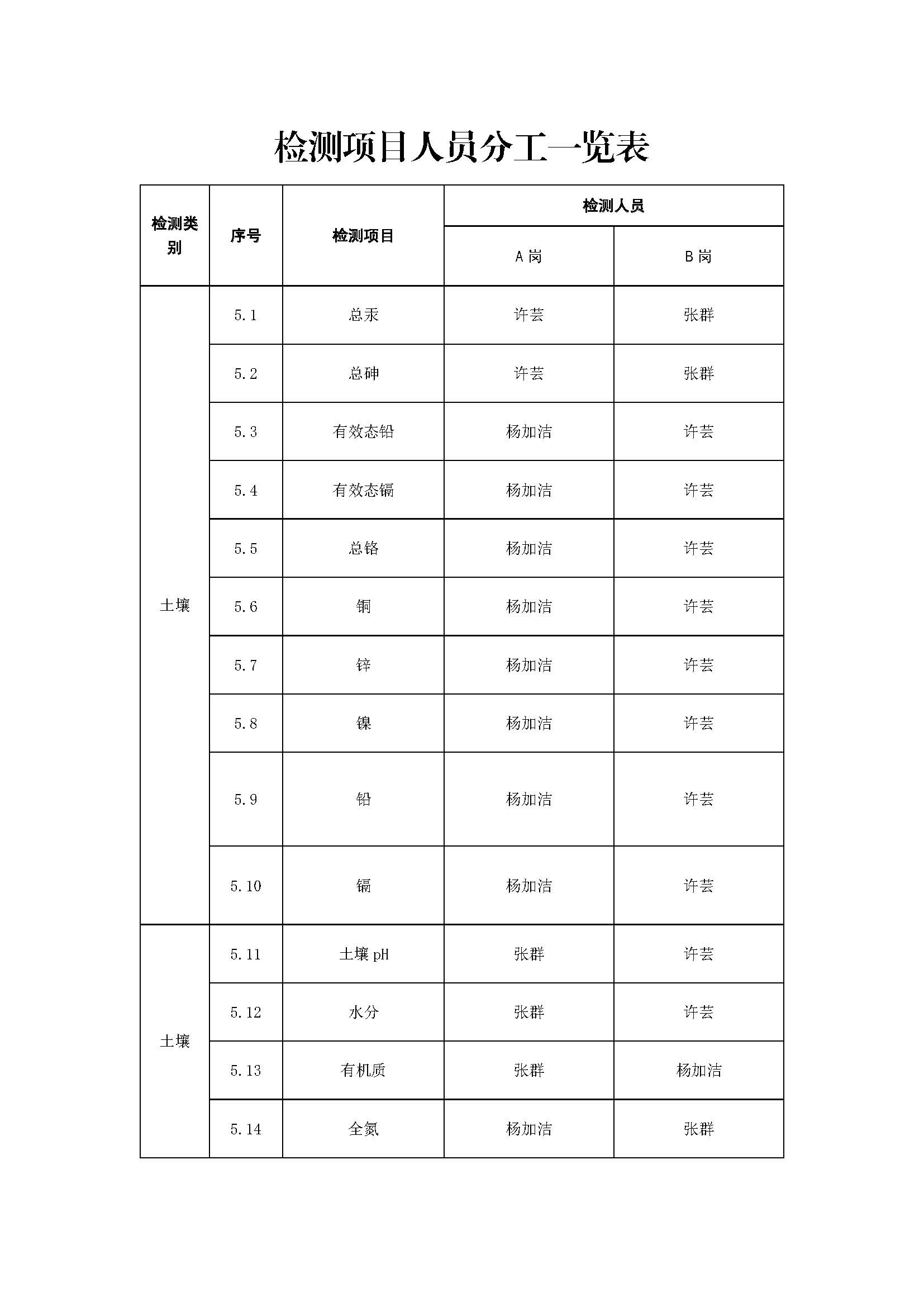 环境科学与工程学院测试中心检测项目人员分工一览表